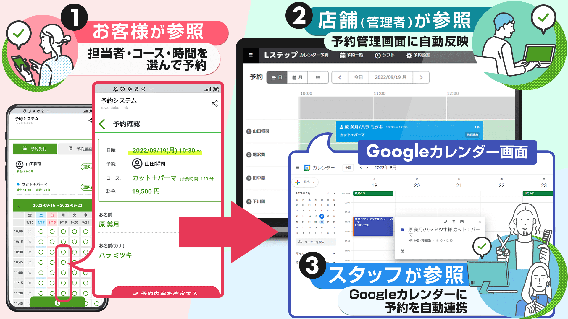 ・お客様のご予約がスタッフのGoogleカレンダーへ自動的に反映される「予約連携」